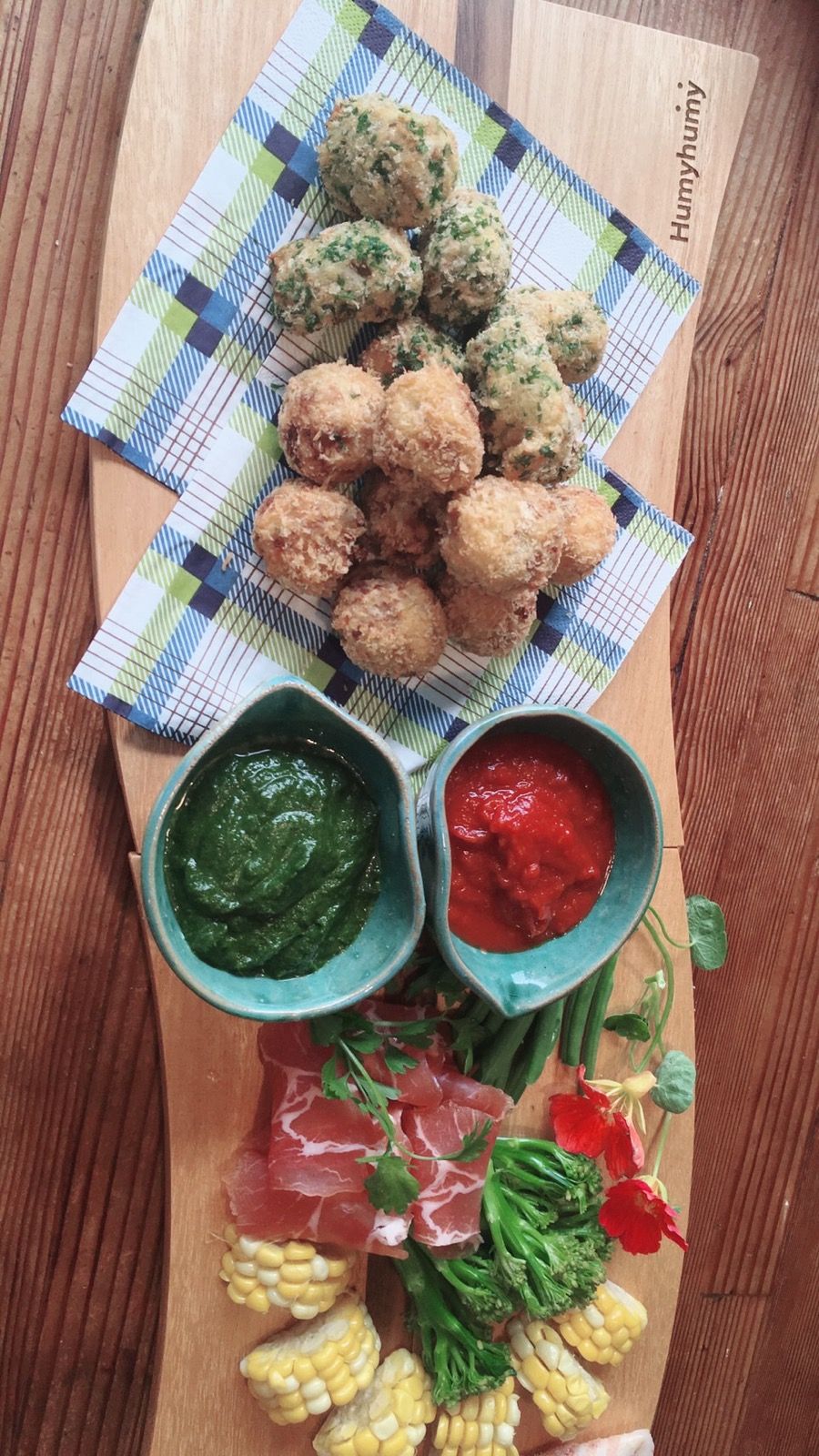 春っぽい色味の料理を並べましたが、木の感じが料理を更に美味しく見せてくれたと思います。